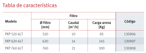 De esta tabla vemos que el filtro ideal para esta piscina es el modelo FKP 620 6LT que tiene una capacidad de 14 m3/h.