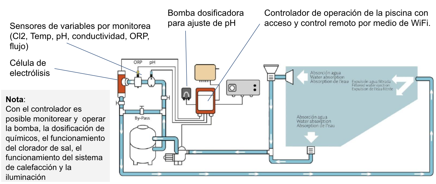 Inclusive hoy es posible monitorear las principales variables de calidad del agua, operar la bomba, la iluminación y dosificación de químicos de forma remota sin necesidad de estar presentes en la piscina.